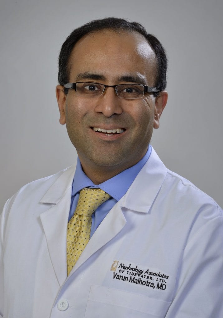Varun Malhotra, M.D. joined the practice in 2018. He completed his Nephrology fellowship from Thomas Jefferson University Hospital in Philadelphia, Pennsylvania. He worked in a group practice in Pennsylvania where he was elected as Vice Chairman of the Department of Internal Medicine at the affiliated teaching hospital. He was involved in teaching and training residents and medical students as a faculty member.Dr. Malhotra is board certified in Internal Medicine and Nephrology and certified as a Clinical Hypertension Specialist from the American Society of Hypertension. His expertise includes all aspects of Nephrology and hypertension with a special interest in electrolyte disorders, acute renal failure, and chronic kidney disease. He is actively involved in teaching medical students, residents, and fellows at Eastern Virginia Medical School (EVMS) and is the associate program director of the Nephrology Fellowship Program at EVMS.Dr. Malhotra is married with two young children. During his free time, he enjoys traveling, playing soccer and tennis.